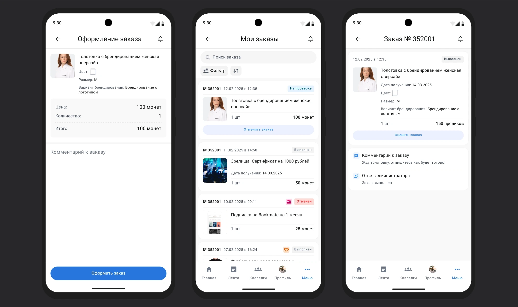 - Оформление заказа;