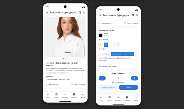 - Выбор товара с параметрами;