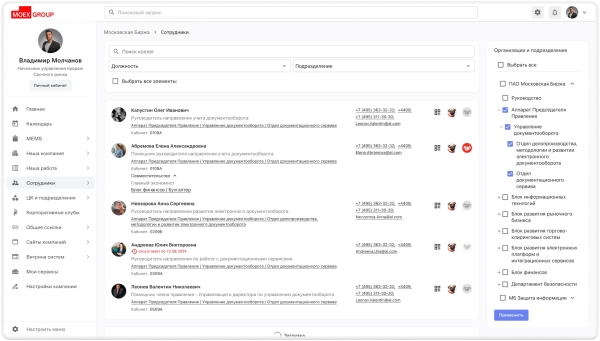 Список коллег и орг. структура компании
