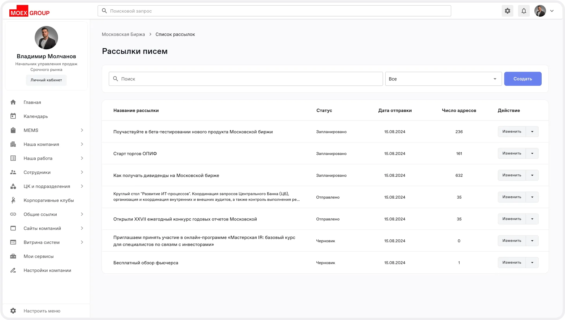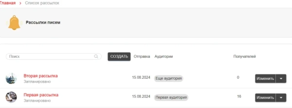 Создание и редактирование почтовых рассылок