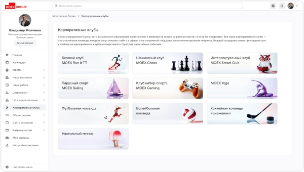 В ходе работы была реализована небольшая доработка по отображению корпоративных клубов, где каждый сотрудник может присоединиться к любому из корпоративных клубов, узнать информацию и посмотреть расписание.