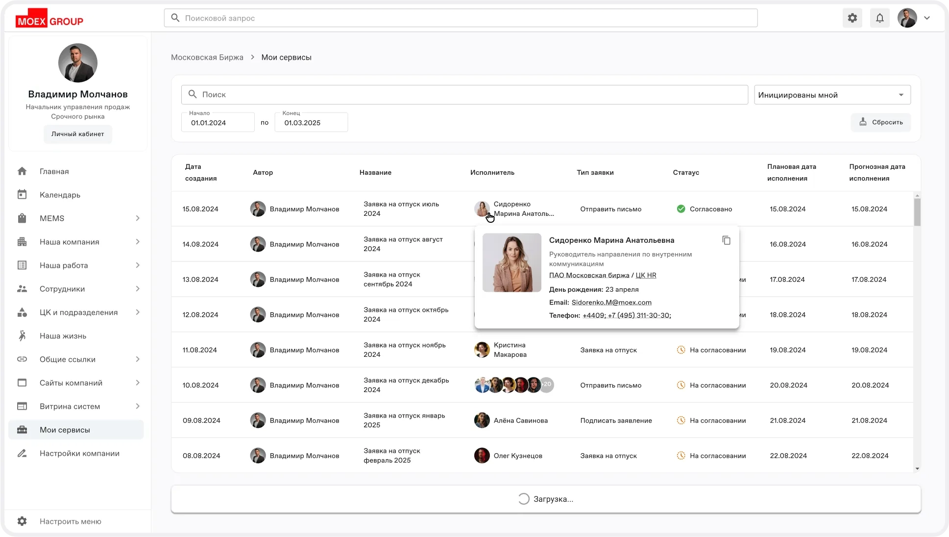 Раздел «Мои заявки» — важный инструмент на портале, позволяющий сотруднику просматривать и фильтровать все созданные и опубликованные им заявки.